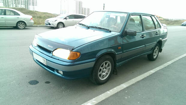 Купил я её у дилера Лада и там ещё в довесок приобрёл синюю Пятнашку под кузовной ремонт (на фото выше). И её так же я поставил во двор под свои окна..