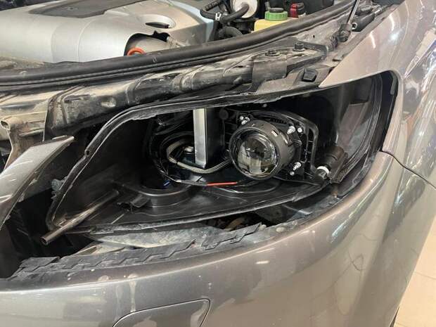 Audi Q7, тоже замена линз с ксенона на Bi-Led Luxsar R8.