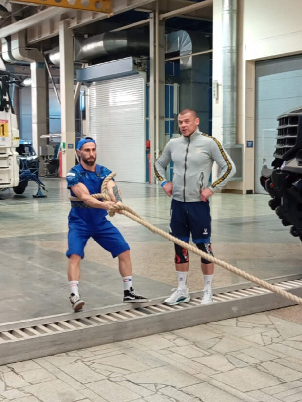 "При планировании этой тренировки я учитывал три важных момента. Во-первых, это аналогичная механика движения, что и при буксировке самолета. Во-вторых, возможность увеличивать вес за счет сцепки нескольких КАМАЗов, доводить до того же тоннажа, что будет у меня с самолетом. Я понимаю механику движения и какие мышцы в основе берут нагрузку на себя. Мало есть таких возможностей, как с КАМАЗом, чтобы поэтапно можно было увеличивать вес и прорабатывать технику. И третий момент – ностальгический. В детстве я по телеканалу "Спорт»" смотрел гонку "Дакар" и болел за команду "КАМАЗ-мастер". Увидеть эти легендарные автомобили вживую, прикоснуться к истории, а теперь еще и провести здесь свою тренировку – это очень символично для меня", - рассказал Денис Вовк.