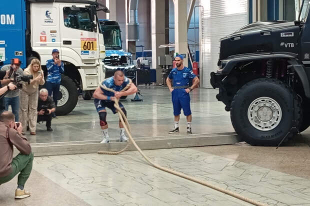 16 ноября 2025 года в Набережных Челнах на базе спортивной команды "КАМАЗ-мастер" прошло необычное мероприятие. Два российских атлета при помощи троса отбуксировали гоночный КАМАЗ!